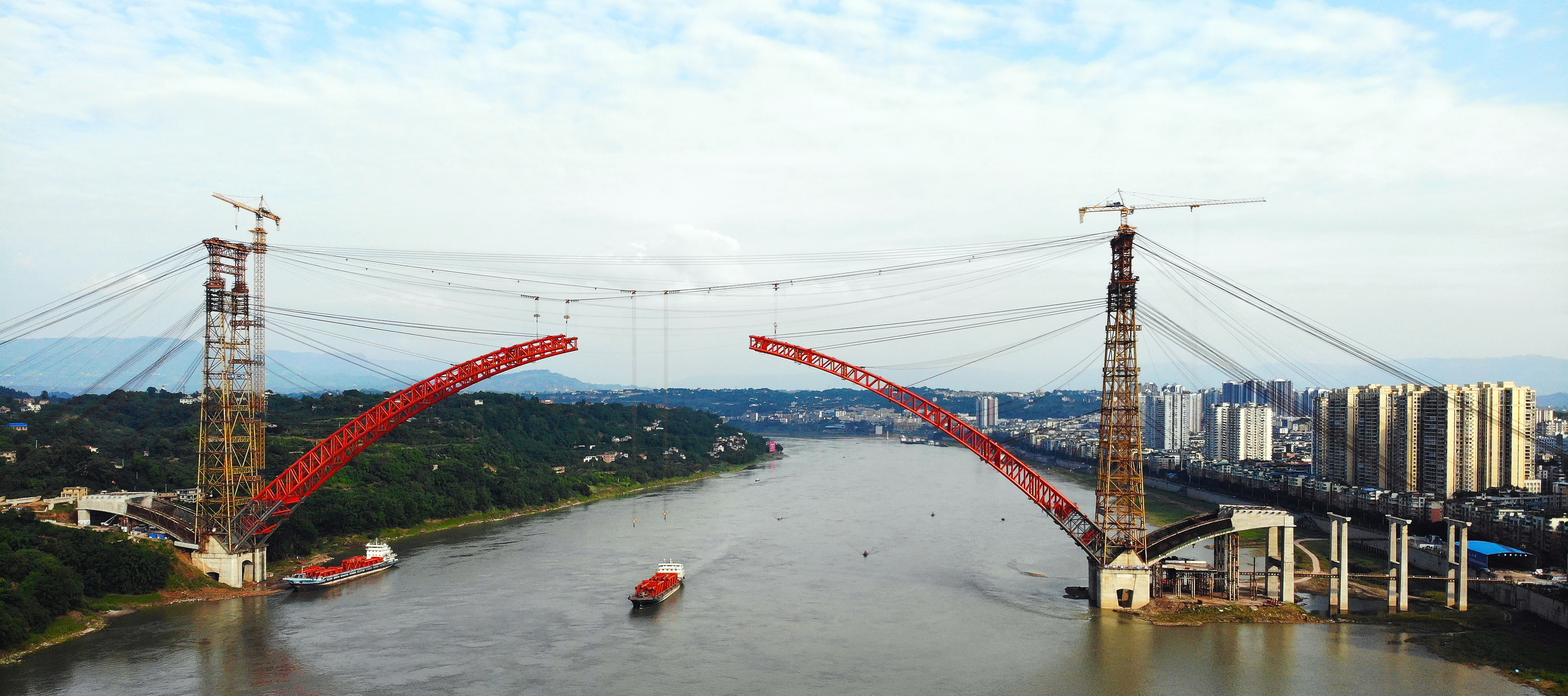 四川合江长江公路大桥是合江县第一座地方长江公路大桥,也是四川渡口改为桥梁的代表工程,建成后将为合江县城区南北两岸的提供便捷过江通道。该桥由四川省公路规划勘察设计研究院有限公司设计,中交第二公路工程局有限公司施工,BB贝博艾弗森参与部分科研工作。本作品拍摄于四川合江长江公路大桥的主拱封胶施工阶段,展示了该桥关键施工过程,体现了钢管混凝土拱桥与环境的协调、和谐之美。